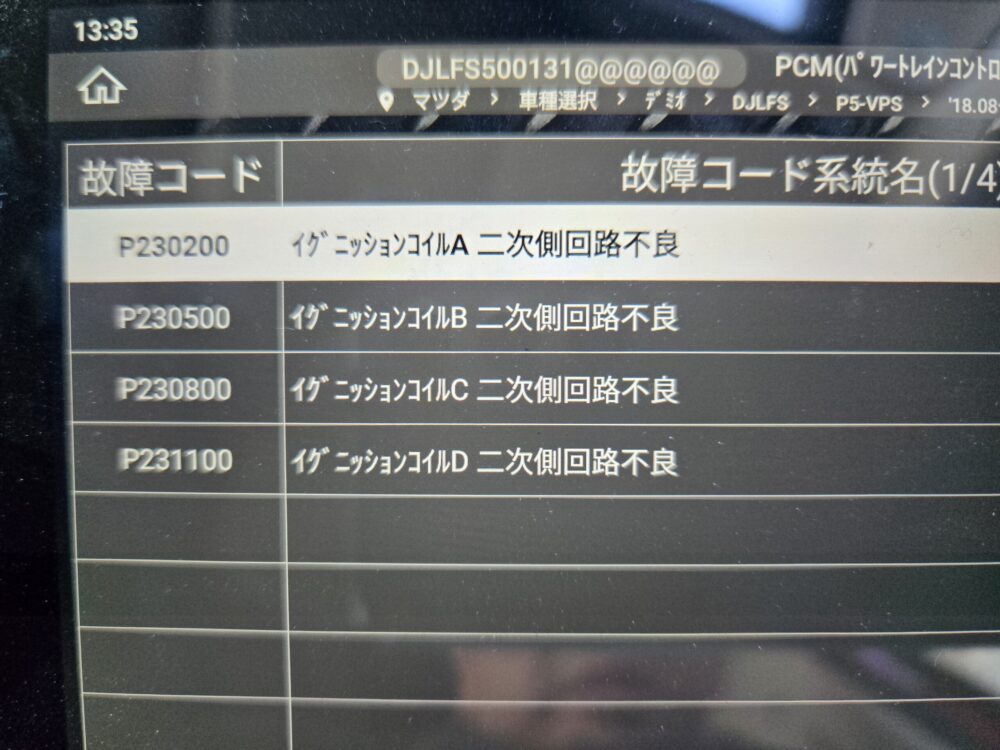 診断機の故障コードは・・・コイル??