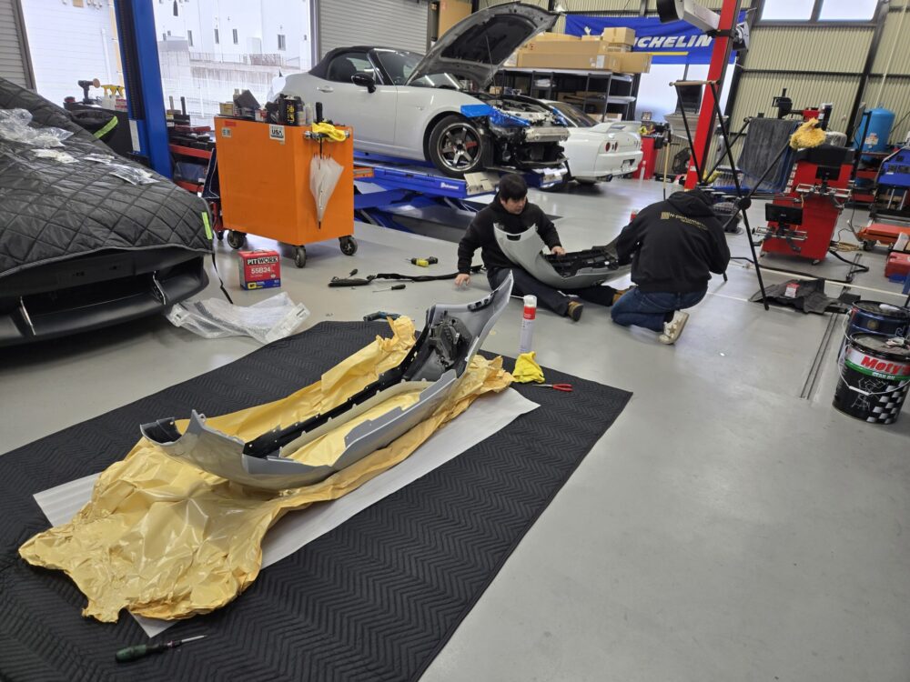 割れたフロントバンパーを交換