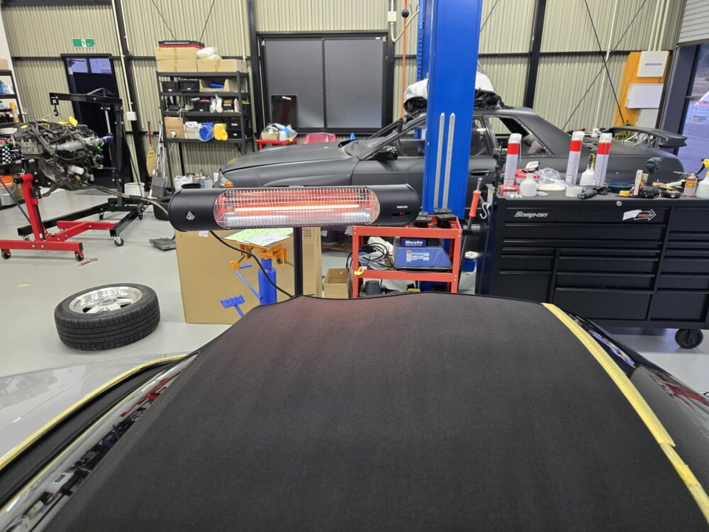 天候が悪い時や時短したい時は赤外線ヒーターを使って乾燥してから作業に入ります。