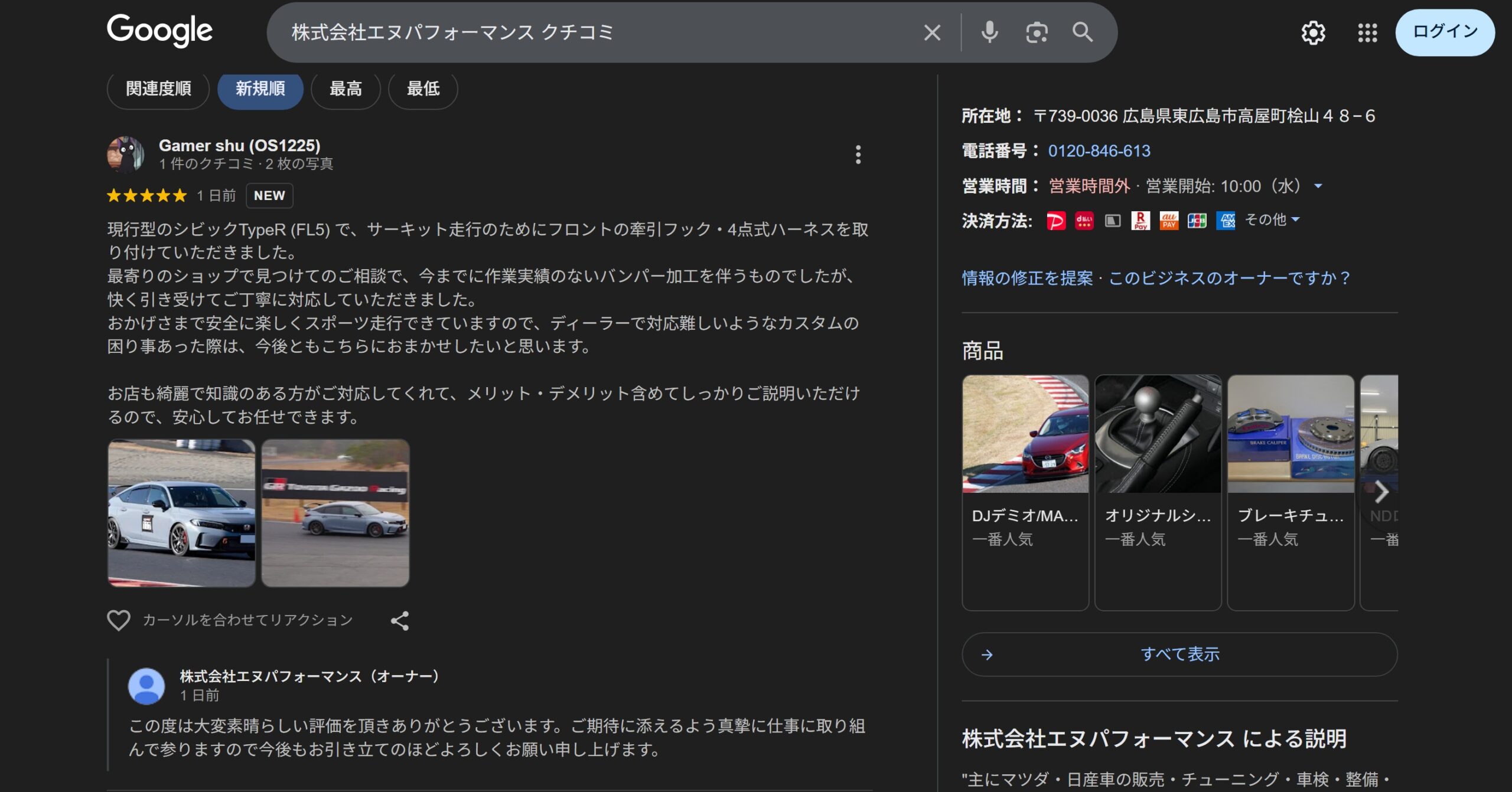 クチコミ評価を頂きました。